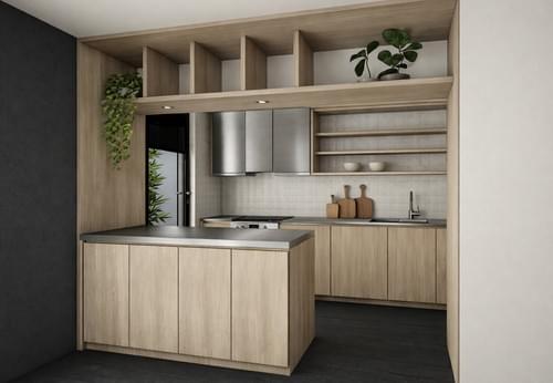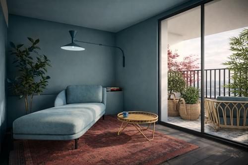 Un volume central structure l’espace et articule les circulations sans cloisonner. En contrepoint, un salon orienté plein Ouest s’inscrit en creux, enveloppé par la lumière et la couleur. Surface d'intervention — 60 m²